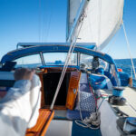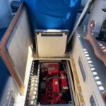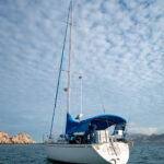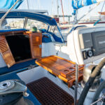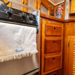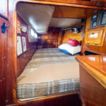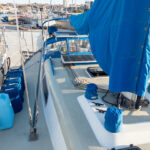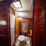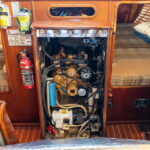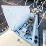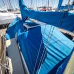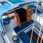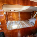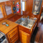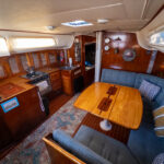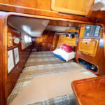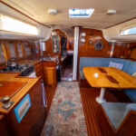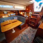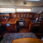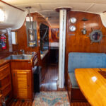 There is a double quarter berth aft to starboard and navigation station to port. The large and spread out galley is located adjacent to the U shaped dinette. Forward of the main salon is a head with an enclosed shower stall and three more berths. This is a very comfortable boat for cruising.