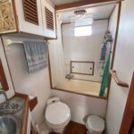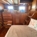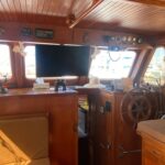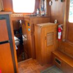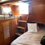 MV Stella C is a well-cared for and equipped example of the Ocean Alexander 40 DC (Double Cabin). Build from 1980 to 1980, the Ocean Alexander 40 Double Cabin was introduced in 1980 when fuel-efficient trawlers were extremely popular in the U.S. market. One of the better-quality imports of her era, she rides on a solid fiberglass, semi-displacement hull with hard chines, moderate beam, and a long keel for improved directional stability. The standard two-stateroom floorplan of the Ocean 40 is arranged with the galley to starboard in the salon and a walkaround queen bed in the aft cabin. A lower helm was standard and port and starboard doors in the salon provide convenient deck access. The Ocean Alexander 40 has an abundance of interior teak, giving her the classic nautical look. The engine room is very spacious with good all-around access. The 120hp Lehman diesel cruises the Ocean Alexander 40 DC at 7–8 knots with a cruising range of about 1000 miles.
