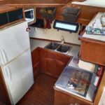 Below decks and full forward is a guest cabin with upper and lower berths to port. Moving aft and to starboard is a head with sink, shower stall and electric head. The 2 other staterooms are situated past the galley/dinette and main salon, further aft and below the aft deck.