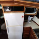 The owners’ stateroom is aft with a queen centerline berth, generous storage and closets, vanity, mirrored wall and en-suite head with sink, electric toilet and tub/shower combo. Access to the aft cockpit from the owner’s stateroom is through a port side companionway.