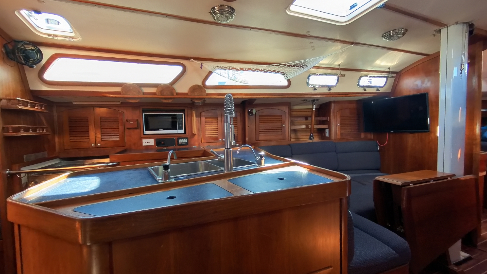 Dodger w/window covers, bimini, mainsail (stack pack), winches, lifeboat – Sunbrella